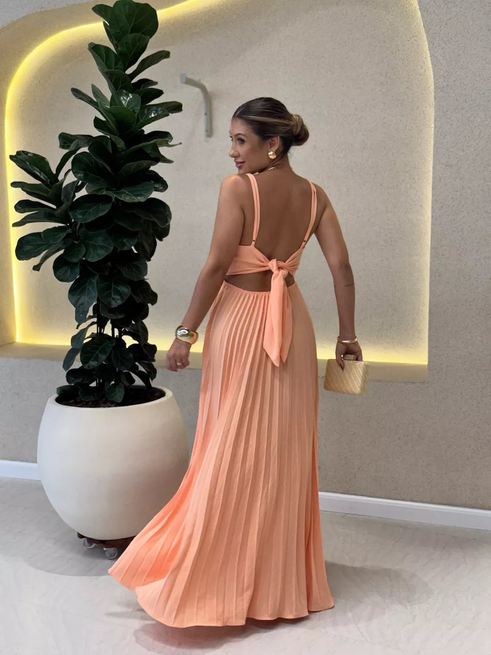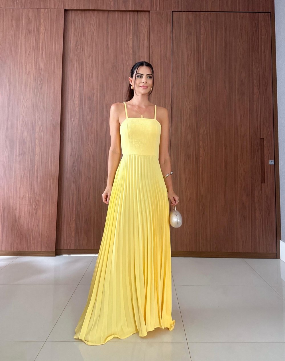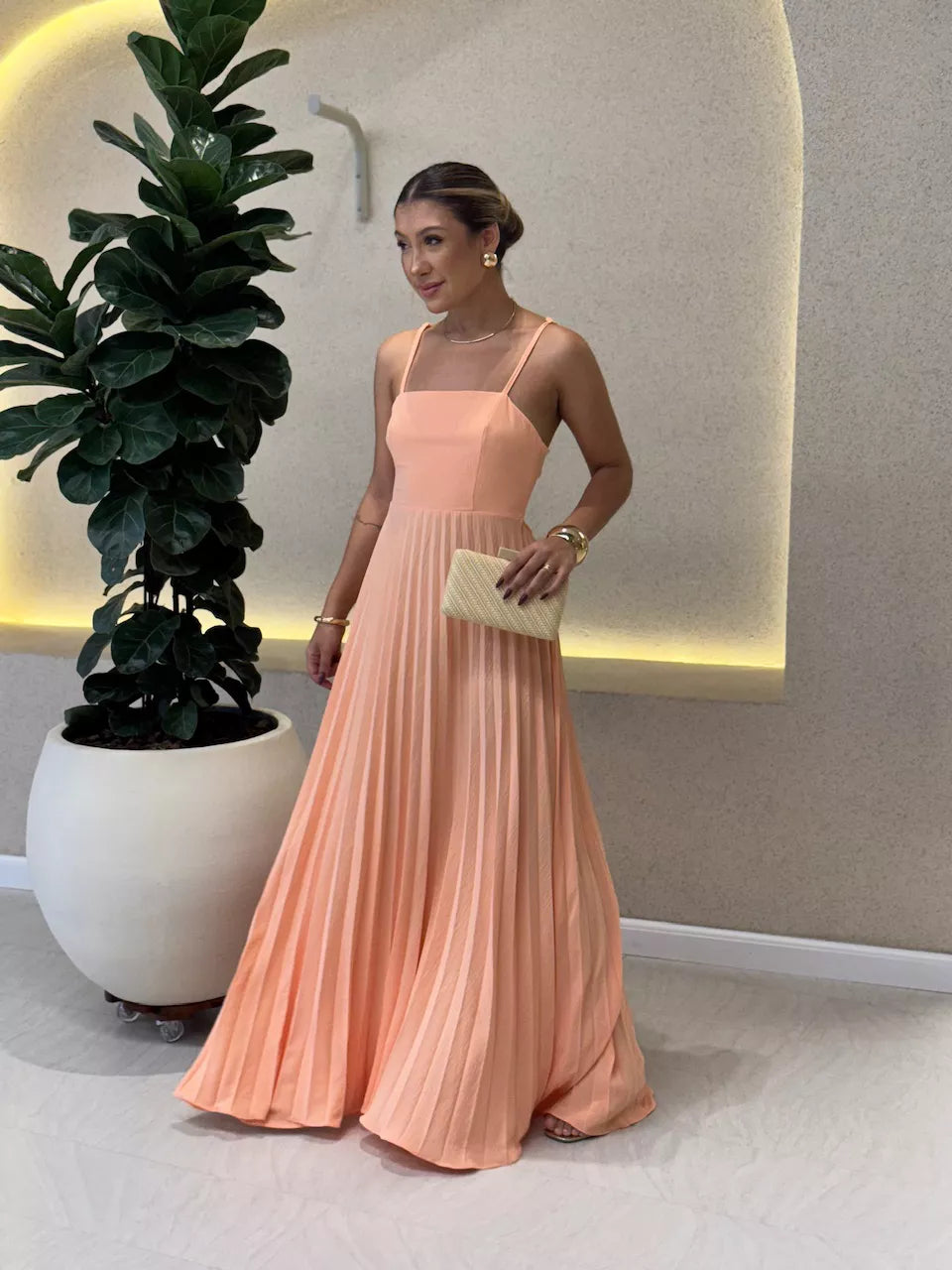 Laisse-toi séduire par la légèreté et la grâce de Kimberly – une robe longue à fines bretelles qui allie fluidité et raffinement. Sa coupe ajustée au buste met en valeur la silhouette, tandis que la jupe plissée crée un mouvement élégant à chaque pas. Un choix idéal pour les mariages, soirées ou tout moment où tu veux briller sans effort.