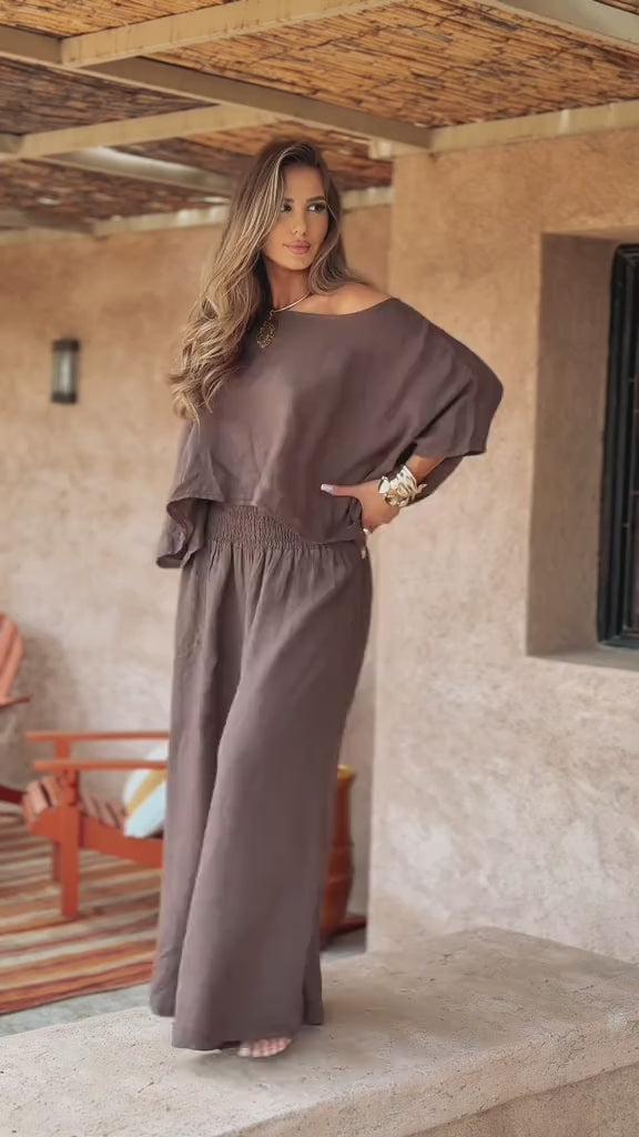 L’ensemble Mandy a été pensé pour les femmes qui recherchent un look estival à la fois élégant et sans effort. Composé d’un haut léger et d’un pantalon assorti en tissu respirant, il est parfait pour les journées chaudes. Porte les deux ensemble pour un look soigné ou sépare-les pour varier les styles.